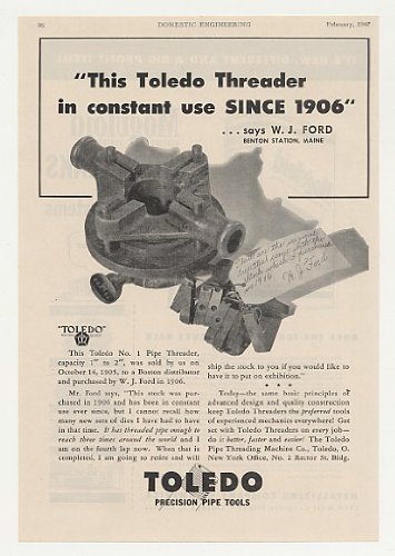 1947 Toledo Pipe Threader in Use Since 1906 Trade Print Ad Review